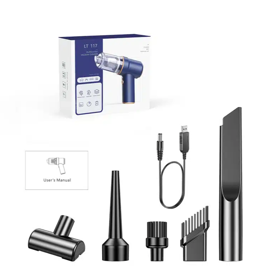Mantén tu auto, tu casa y tu oficina siempre limpios con esta aspiradora portátil, diseñada para ofrecerte máxima practicidad y poder de succión y soplo en cualquier lugar.